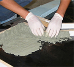 Color-conscious: Add coloring agent to the mixing water, for better control and consistency from one batch of concrete to another. Check instructions on the products you use; the typical ratio is two bottles of color to 80 pounds of dry concrete. Once the concrete reaches that oatmeal consistency and the color is uniform throughout, pour it into the form.